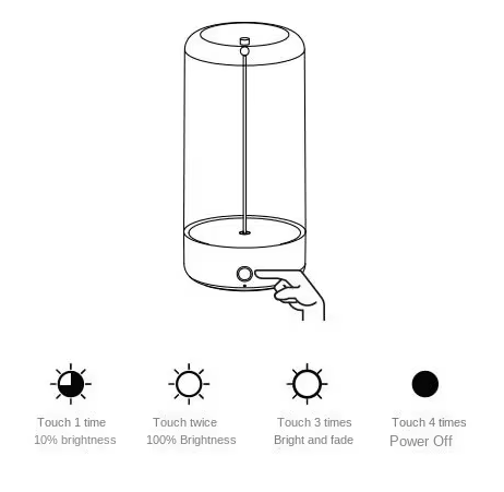 - İlk dokunuşun parlaklığı %10, ikinci dokunuşun parlaklığı ise %100'dür. Üçüncü dokunuş otomatik durumundadır; parlaklık, karanlıktan aydınlığa ve ardından karanlığa kademeli olarak değişir.